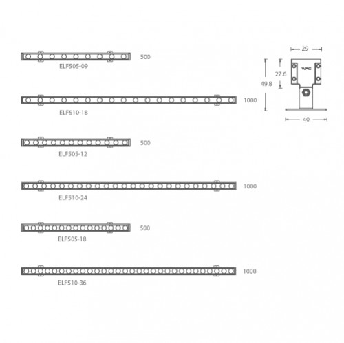 ELF505-12 | 500 | 12 (Max) | 12 | ET ON-OFF 24V DC Power Supply DT 0-10V Dimming 24V DC Power Supply MT DMX512 Dimming 24V DC Power Supply | 1 15° 2 23° 3 33° 4 41° F 23°*48° | 27 2700K 30 3000K 40 4000K | BK Black |