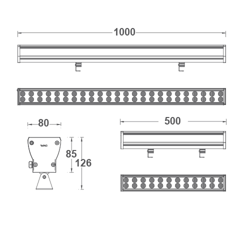 ELS505-054 ELS510-108 | 500 1000 | 54(Max) 108(Max) | 24 48 | ML DMX512 Dimming 220V AC Power Supply | 1 14° 2 24° 4 39° 6 57° G 23°x35° | F3 RGBW(3000K) F4 RGBW(4000K) | BK Black | |