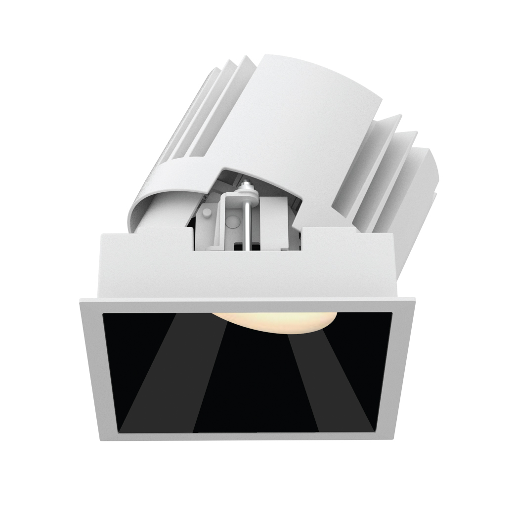 Square Narrow-Trim Recessed Downlight, featuring a streamlined design, this fixture combines a precision lens with a black reflector to deliver exceptional luminous efficacy while achieving superior glare control. The reflector and optical accessories can be easily removed and replaced, offering excellent on-site flexibility. Ideal for hotels and commercial interiors.